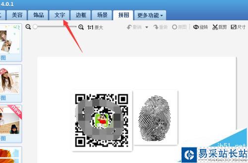 7、還要進行添加文字的,進行點擊菜單中的“文字”選項,然后就會彈出了輸入框中,進行輸入“長按指紋 識別二維碼”。