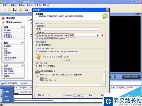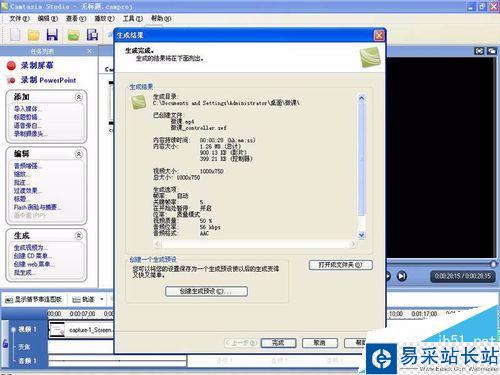 5、如果你錄的微課沒什么問題可以直接選擇生成,生成前會彈出保存源文件的對話框,保存路徑可以更改,但名字不能改成中文,改成中文軟件會卡死。