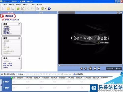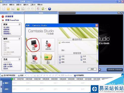1、啟動camtasia studio錄制屏幕,可以點歡迎窗口里面的錄制屏幕,也可以點任務列表里的錄制屏幕。