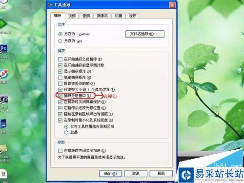 2、會彈出一個錄像窗口,找到工具菜單中的選項,把捕獲分層窗口的勾去掉,這樣防止錄制屏幕時鼠標閃動。
