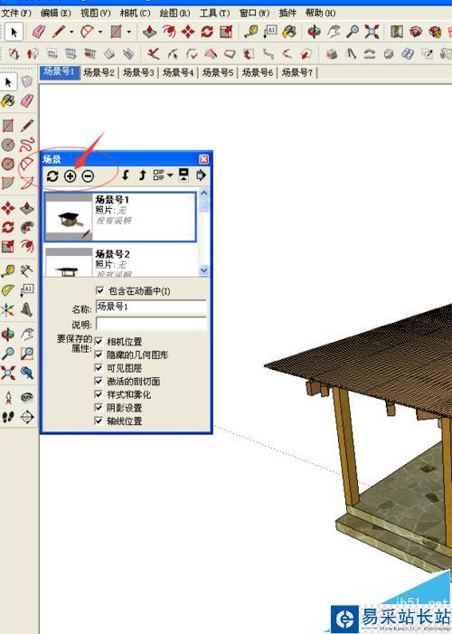 2、把需要導出圖片的角度全部添加在場景里面,案例中我添加了7個場景。