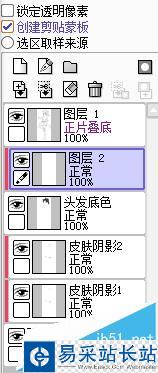 5、然后繼續新建圖層,開始上陰影,選擇比頭發顏色更深的顏色開始涂抹。