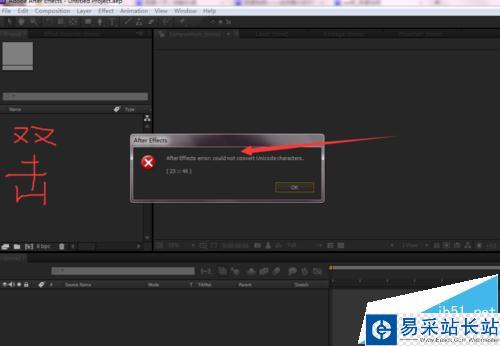 1、首先我們來看AE,出現After Effects無法轉換Unicode字符,這就導致無法導入素材,導入工程也看不到素材!