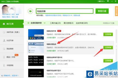 4、選擇之后我們看到這里可以解決很多的電腦問題,我們選擇 熱門工具——電腦故障,