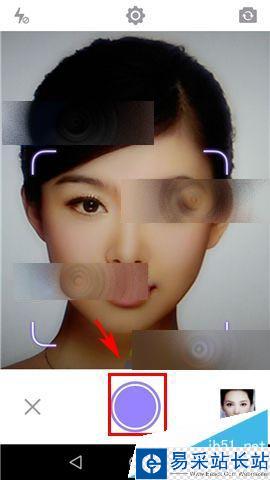 1)打開,美妝相機進入軟件首頁后點擊【美妝相機】,點擊下方【中間按鈕】進行拍取照片。(如下圖)