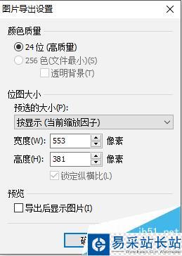 5、點擊保存按鈕,彈出圖片導出設置窗口,通過該窗口可以設置圖片導出的分辨率,如果想要讓導出的圖片足夠清晰,可以選擇最高的分辨率導出,如下圖所示。