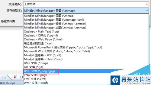 4、選擇JPEG格式之后,另存為對話窗口會將mindmanager格式文件另存為jpeg格式文件,如下圖所示。