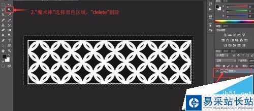 2、雙擊“圖層”解鎖,“魔術棒”勾選中黑色趨于,按“delete"刪除