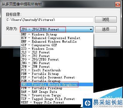 5、選擇提取幀圖片的圖片格式(建議選png格式)