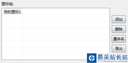 2、點擊圖標組旁的添加,即可添加一個新的圖標組,系統(tǒng)默認為“我的圖標1”,你可以點擊右側(cè)的重命名更改圖標組的名字。點擊刪除就會將選中圖標組刪除。