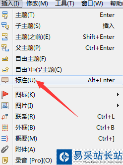 方法一:右擊主題,在“插入”中選擇標(biāo)注選項(xiàng)。