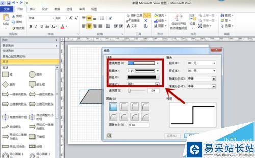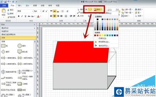 3、先描繪出小屋的底座,并調(diào)整所繪圖形的線條格式和填充格式,如圖所示。