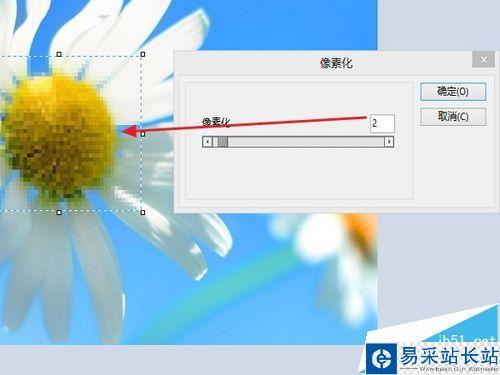 5、點(diǎn)擊后,已經(jīng)可以看到有效果了,但是不是很明顯,將像素化的值拉大,越大,馬賽克越大,顯示的也就越不清晰。