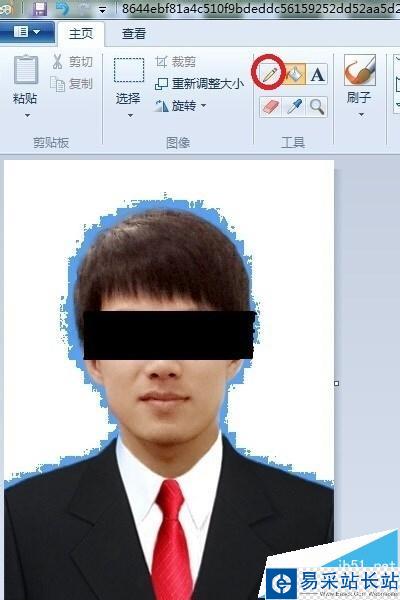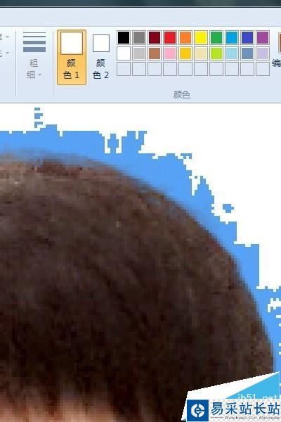 4、在照片藍(lán)色區(qū)域點(diǎn)一下,可以看到,大部分藍(lán)底已經(jīng)變成白底,只有頭像邊緣部分還是明顯藍(lán)色.