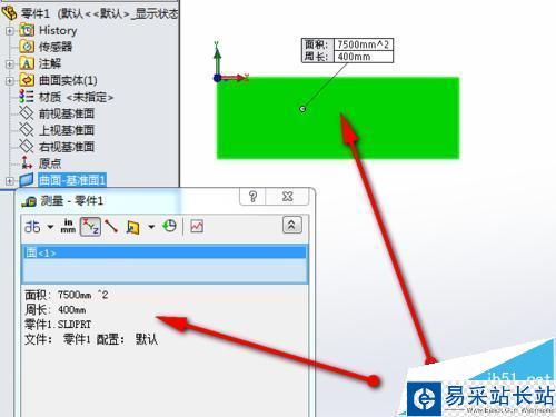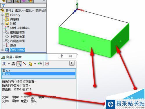 將創建的草圖拉伸為一個實體,然后點擊測量工具,當我們選中兩個面的時候我們還可以測量這兩個面的面積之和。