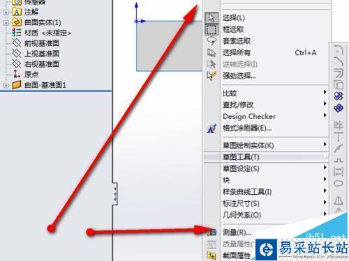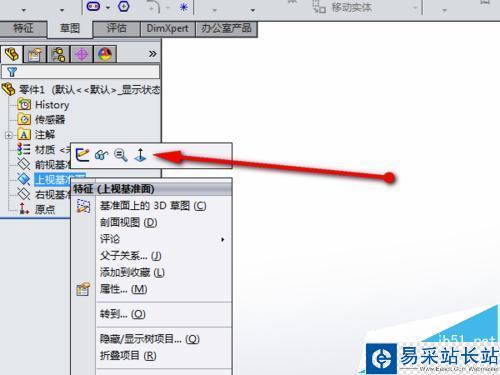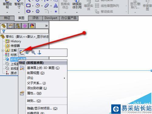 1、打開軟件,單擊“草圖”,右鍵選擇“上視圖基準面”。