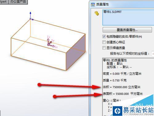 1、點擊“工具”——“質量屬性”。在彈出的對話框里,我們可以看到,這個零件的質量、表面積、體積等參數。