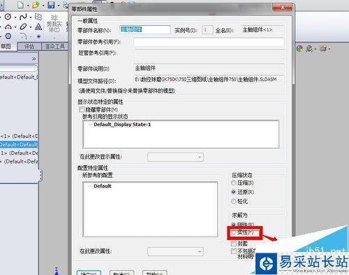 5、打開零部件屬性,并點擊求解為命令下的,為柔性,點擊確定