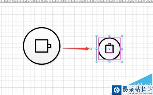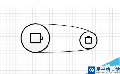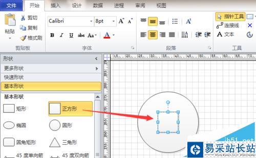 2、接著,從左側形狀欄中將“圓形”和“正方形”兩個形狀拖入編輯區域,并調整兩個圖形的大小,如圖所示。