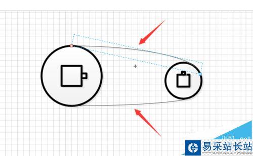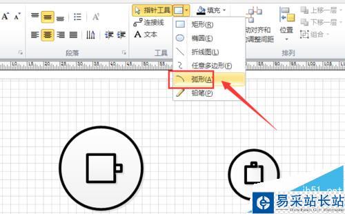 5、在上方工具欄中找到“弧線”形狀,從上方和下方將兩個整體形狀連接起來并調整他們的粗細和顏色,如圖所示。