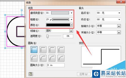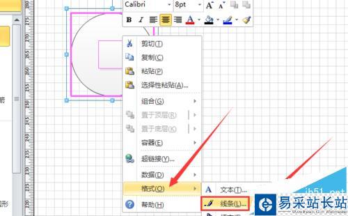 3、選中兩個圖形,單擊鼠標右鍵,選擇“形狀”-“線條”選項,調整粗細和顏色如圖所示。
