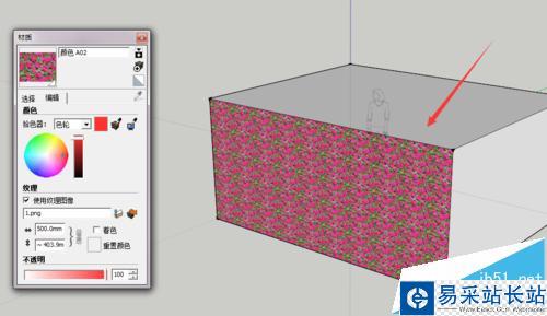 6、你會(huì)看到這個(gè)剛才填充紅色的面變成了自定義的材質(zhì)