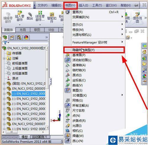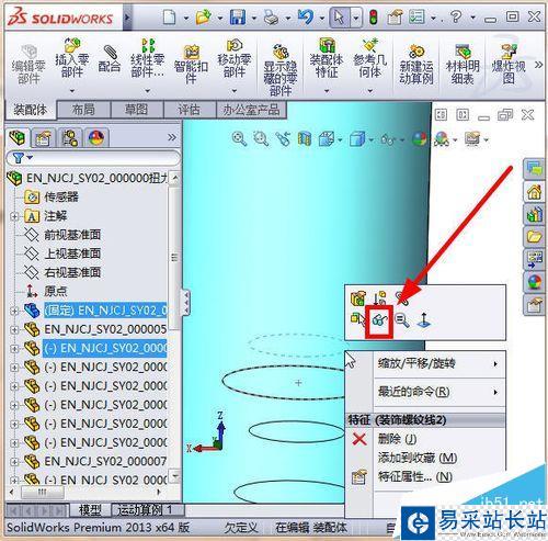 在使用solidworks軟件裝配時,有時候會出現(xiàn)很多螺紋裝飾線,當螺紋線比較多時,每一個都需要點擊右鍵隱藏,這非常麻煩,筆者針對此問題,通過摸索,得出一種解決方法,現(xiàn)分享一下。