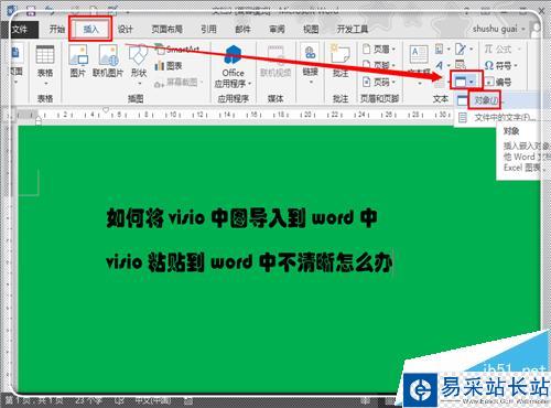 1、這里以word2013和visio2013為例,打開word文檔,在菜單欄點擊“插入”,進入到插入操作界面。
