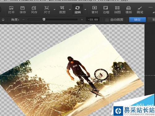 5、如果要將圖片旋轉,則單擊“旋轉”,出來的“十字”線用鼠標單擊圖片左邊則逆時針旋轉,單擊圖片右邊則順時針旋轉