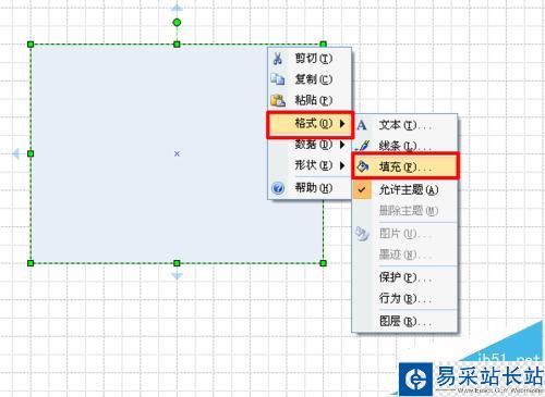 2、點擊選中方框圖形,然后點擊鼠標右鍵,在下拉菜單中,依次選擇“格式”-“填充”,如下圖所示: