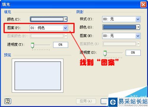 3、在彈出的“填充”設置框中找到“圖案”,如下圖所示: