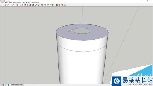 4、使用推拉工具,推拉出如圖的圖形,如果發現下邊圓柱鏤空了,就用畫線工具補上線。