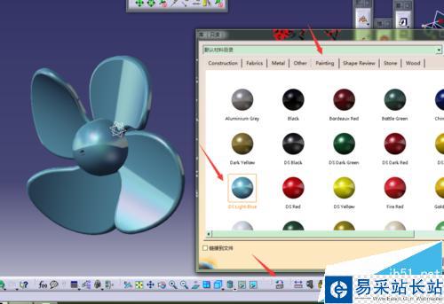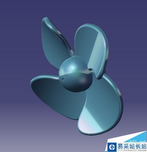 用CATIA軟件繪制4葉螺旋槳,用到拉伸,凹槽命令。用陣列的方法得到螺旋槳實體。看一下成平。