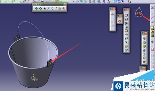 4、繪制水桶的倆個(gè)耳朵。按照下圖進(jìn)行繪制。