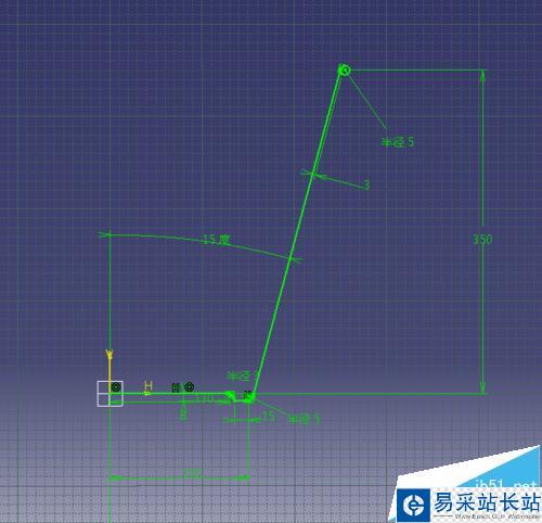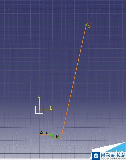 2、選擇YZ平面,選擇輪廓線,繪制一條如下圖的輪廓線。