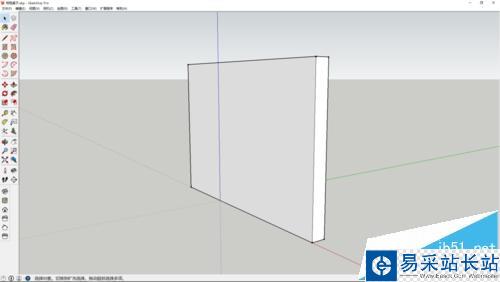 1、首先使用矩形工具繪制一個(gè)平面,并用推拉工具拉出一定高度成為一個(gè)立方體,當(dāng)作一堵墻。
