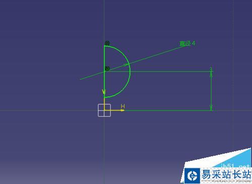 2、選擇YZ平面進入草圖,繪制一個直徑4的半圓;退出草圖;