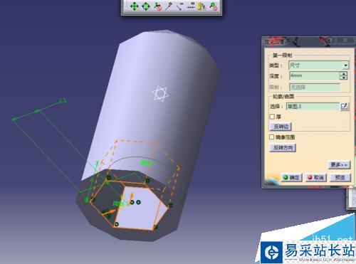 5、選擇底面繪制六角凹槽;