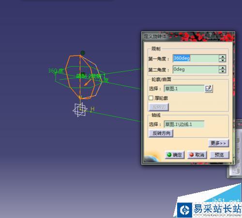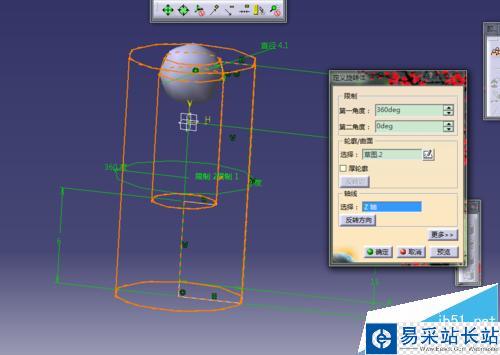 3、選擇旋轉體命令,進行旋轉得到一個球體;