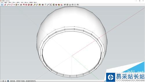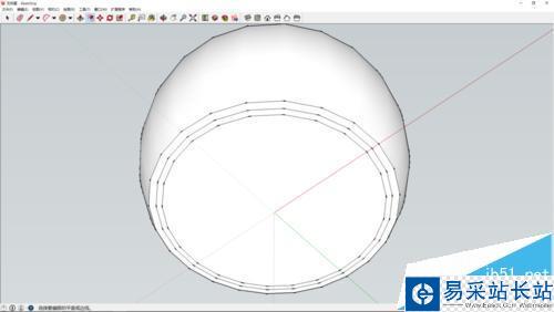 5、最后使用偏移工具偏移底面圓周長,形成如圖圖形,再使用推拉工具拉出一點距離,形成杯腳。完成。