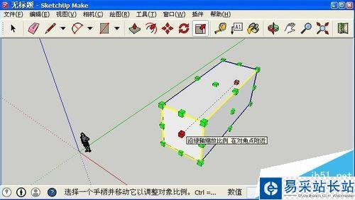 4、你此時可以把鼠標(biāo)懸停在各個面上最中間的點(diǎn)上看下效果,會有提示。你可以選擇在紅綠藍(lán)軸的其中一個軸的方向進(jìn)行縮放。