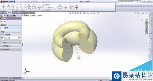 先分別繪制2個(gè)草圖,繪制一個(gè)圓和一條樣條曲線,在前視圖和右視圖繪制草圖,得到如下圖所示的圖形。點(diǎn)擊掃描命令,選擇輪廓為圓形,路徑為樣條曲線,完成掃描的使用命令。