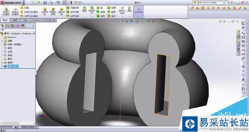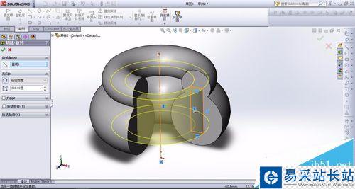 2、余拉伸的第2步相似,旋轉(zhuǎn)切除的使用,先點(diǎn)擊表面位置,再點(diǎn)擊選擇切除,繪制草圖圖形,完成草圖并且退出,輸入角度即可完成該命令。