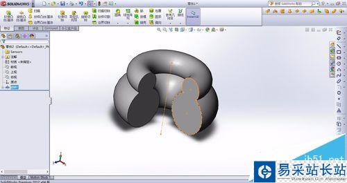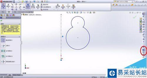 1、我們先繪制一條中心線,然后繪制2個(gè)相交的圓,使用修剪命令,按住左鍵拖動(dòng)鼠標(biāo),即可修剪,退出草圖。最后輸入角度完成旋轉(zhuǎn)。