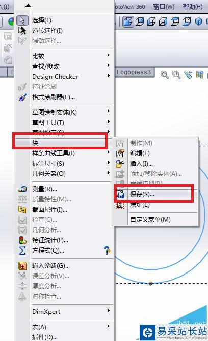 7、選中剛才建好的塊,單擊“工具”菜單中的“塊”,在“塊”子菜單欄中,單擊“保存”按鈕,保存到合適位置即可。