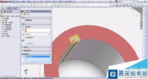 4、點擊拉伸切除,在上表面繪制鍵槽,給定深度可以是貫穿整個,也可以設置大于該厚度即可,點擊打勾確定。