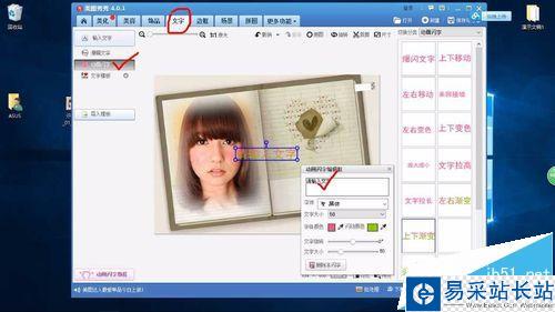 5、接下來,單擊文字按鈕,并選擇動畫閃字,如下圖所示: