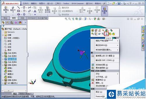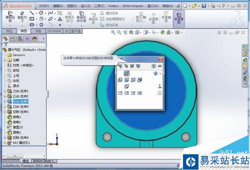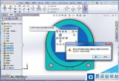 6、選擇一個視圖,如“前視圖”,點擊相關圖標后就把前視圖更新為當前模型視圖了。更新前視圖后,其相關的其他視圖的相應得到更新,點擊提示對話框中的“是”即可,如下圖所示: