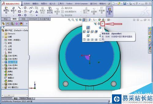4、點擊前導視圖中的“視圖定向”,在彈出的下拉菜單中點擊“更多選項”,如下圖所示: