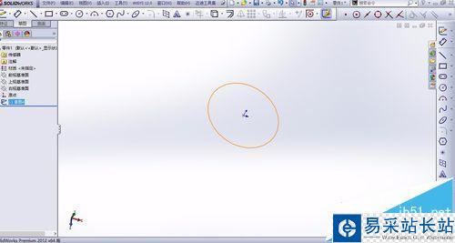 2、新建一個零件,以上視基準(zhǔn)面為草圖平面,繪制一個大小任意的圓形,點擊確定退出草圖。